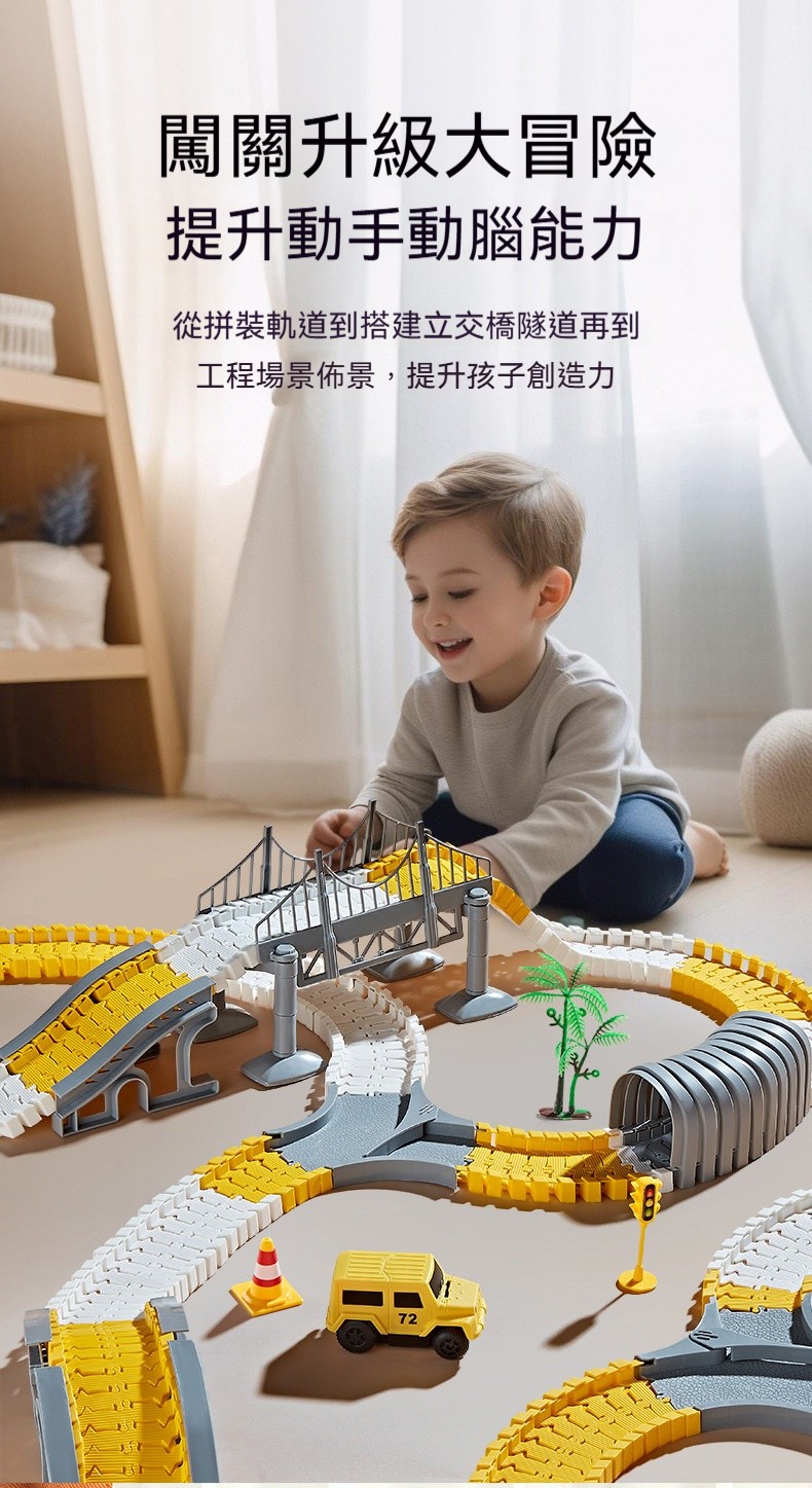 百變工程軌道樂園!親手蓋高架橋×穿越隧道×自創賽道✨【玩出未來競爭力】 ✅ 邏輯思維:規劃路線與結構穩定性計算 ✅ 創造爆發:配件自由組合獨家賽道 ✅ 手腦並用:精密拼接鍛鍊專注力與協調性 ✅ 情境模擬:工程車+交通標誌生活認知
