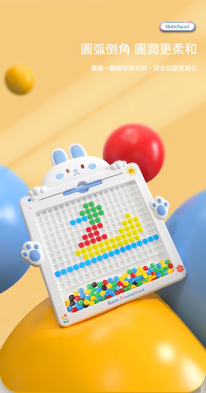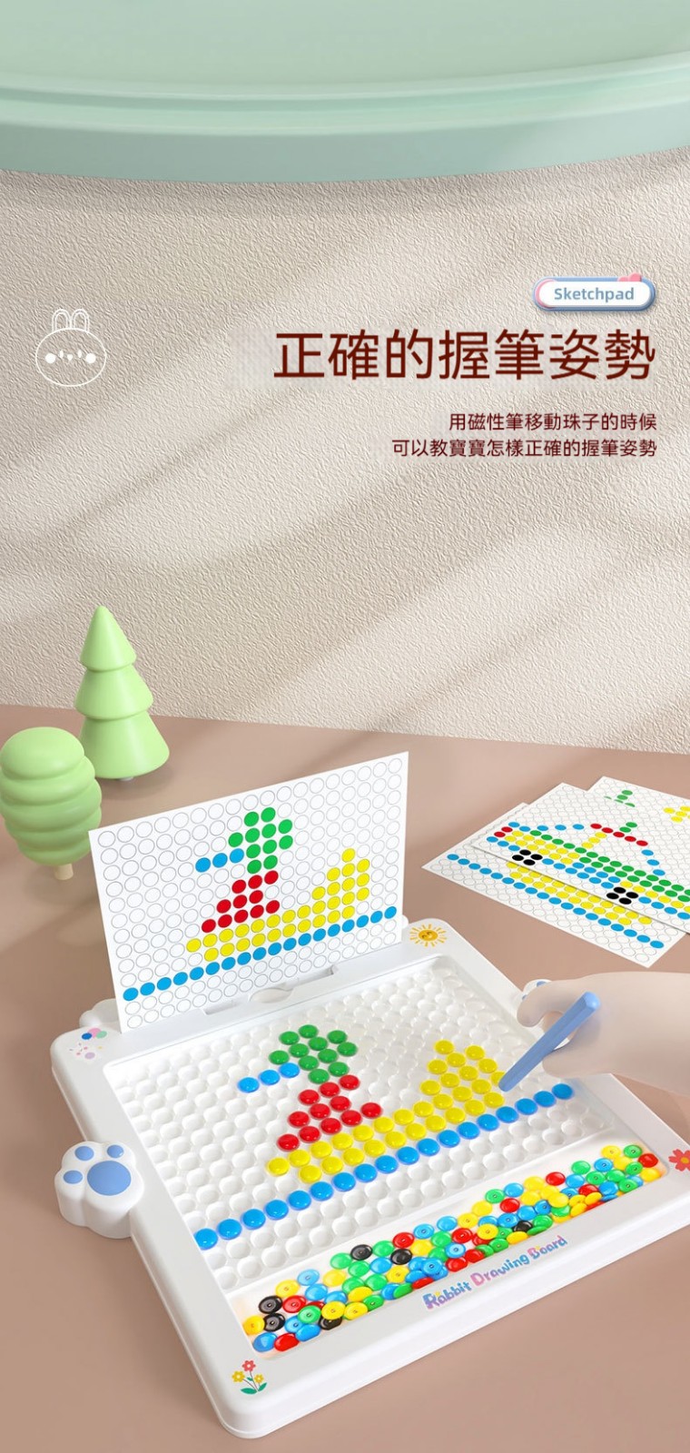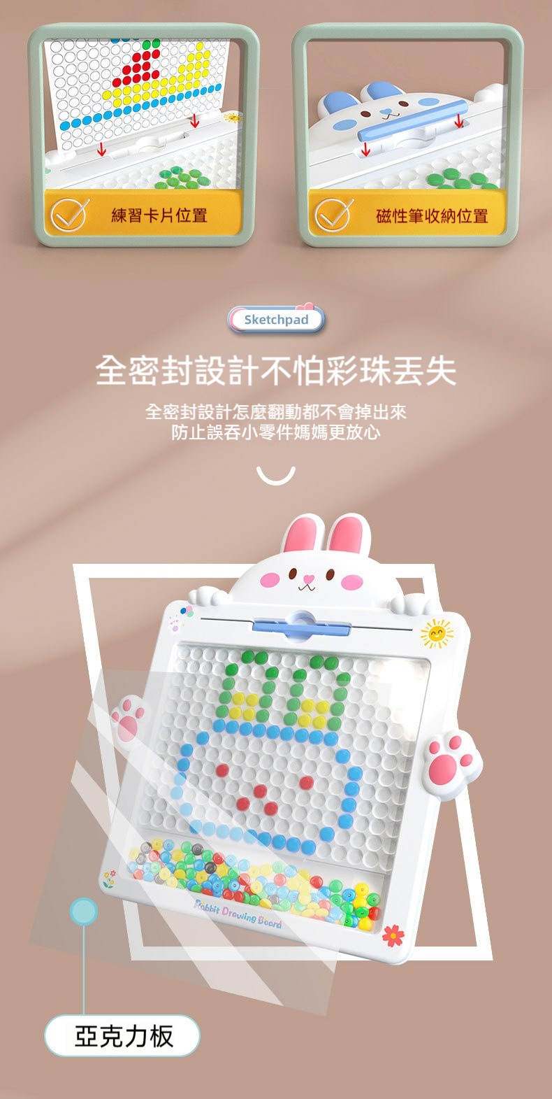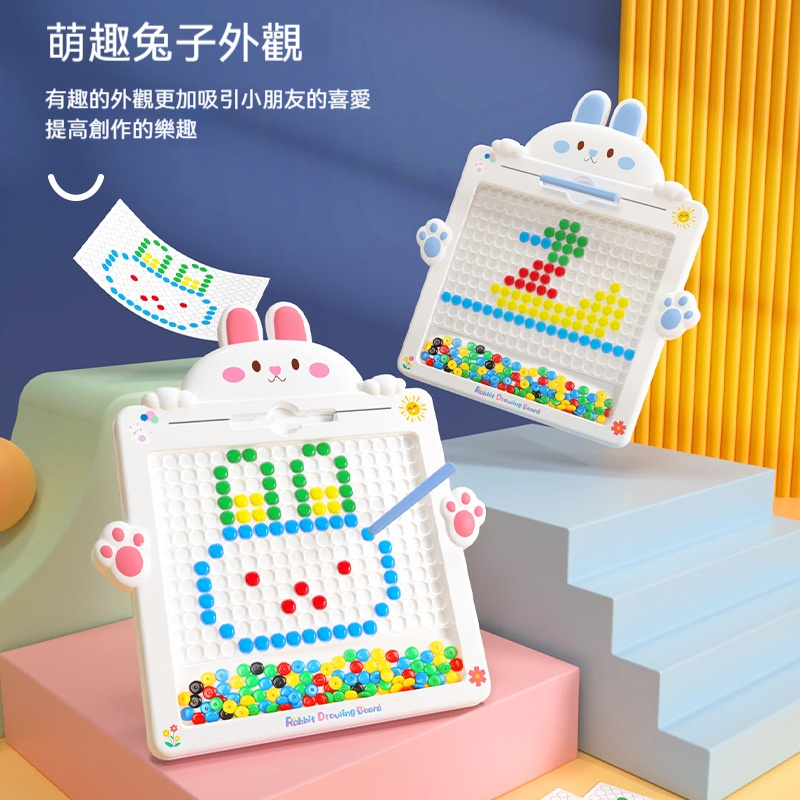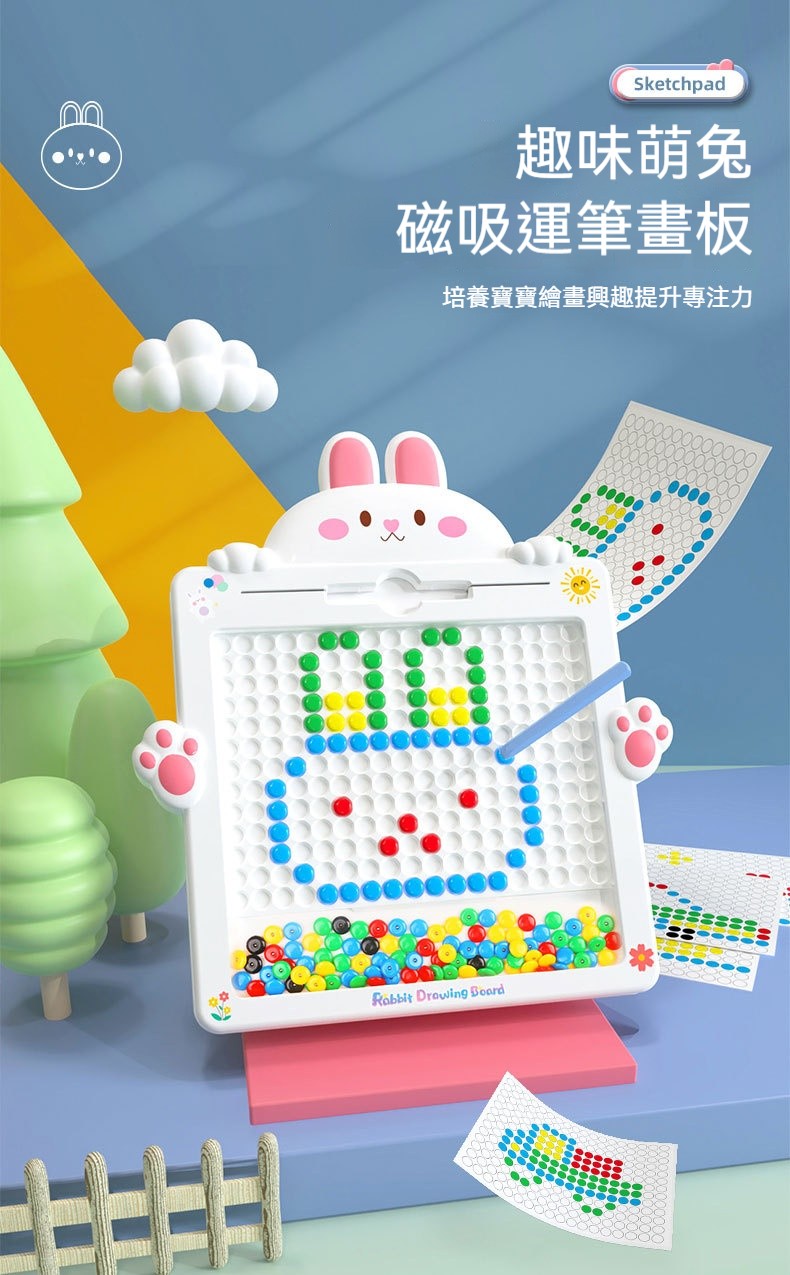 【能畫畫的萌兔畫板來了】磁吸運筆畫板~玩出專注力+色彩感知力!✨【玩出五大能力】 ✅ 色彩認知:6種鮮豔彩珠激發視覺感知 ✅ 創意啟發:自由創作獨一無二的圖案 ✅ 專注培養:需要耐心完成作品的成就感 ✅ 精細動作:磁吸移動訓練手部小肌肉