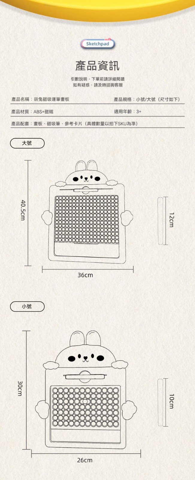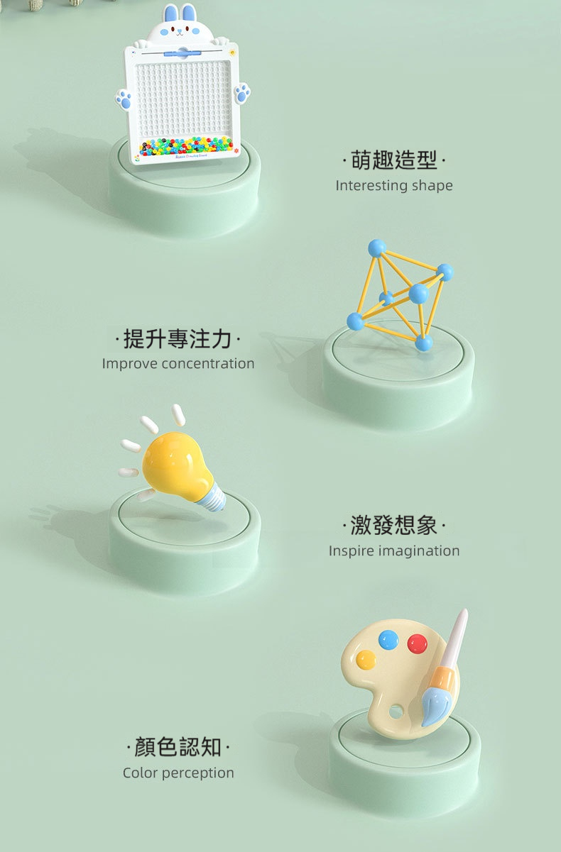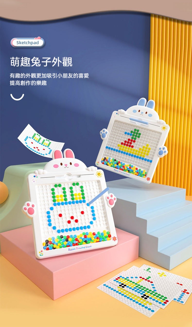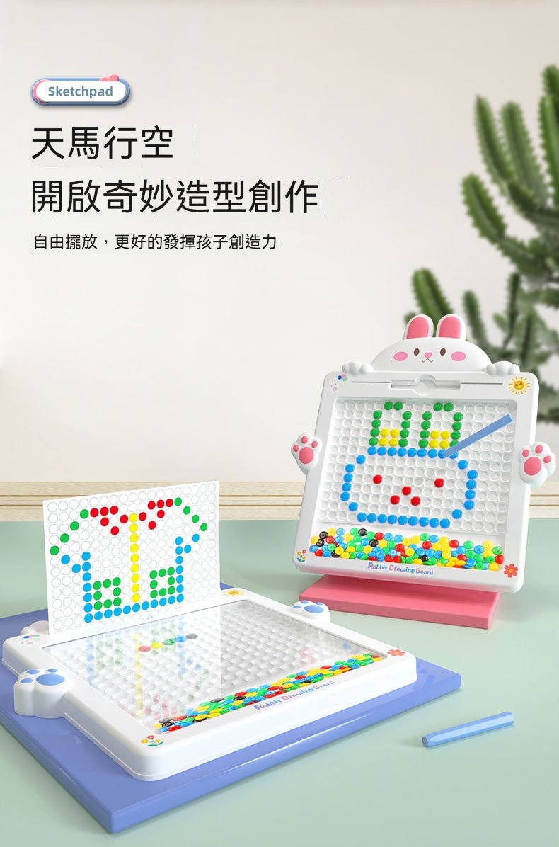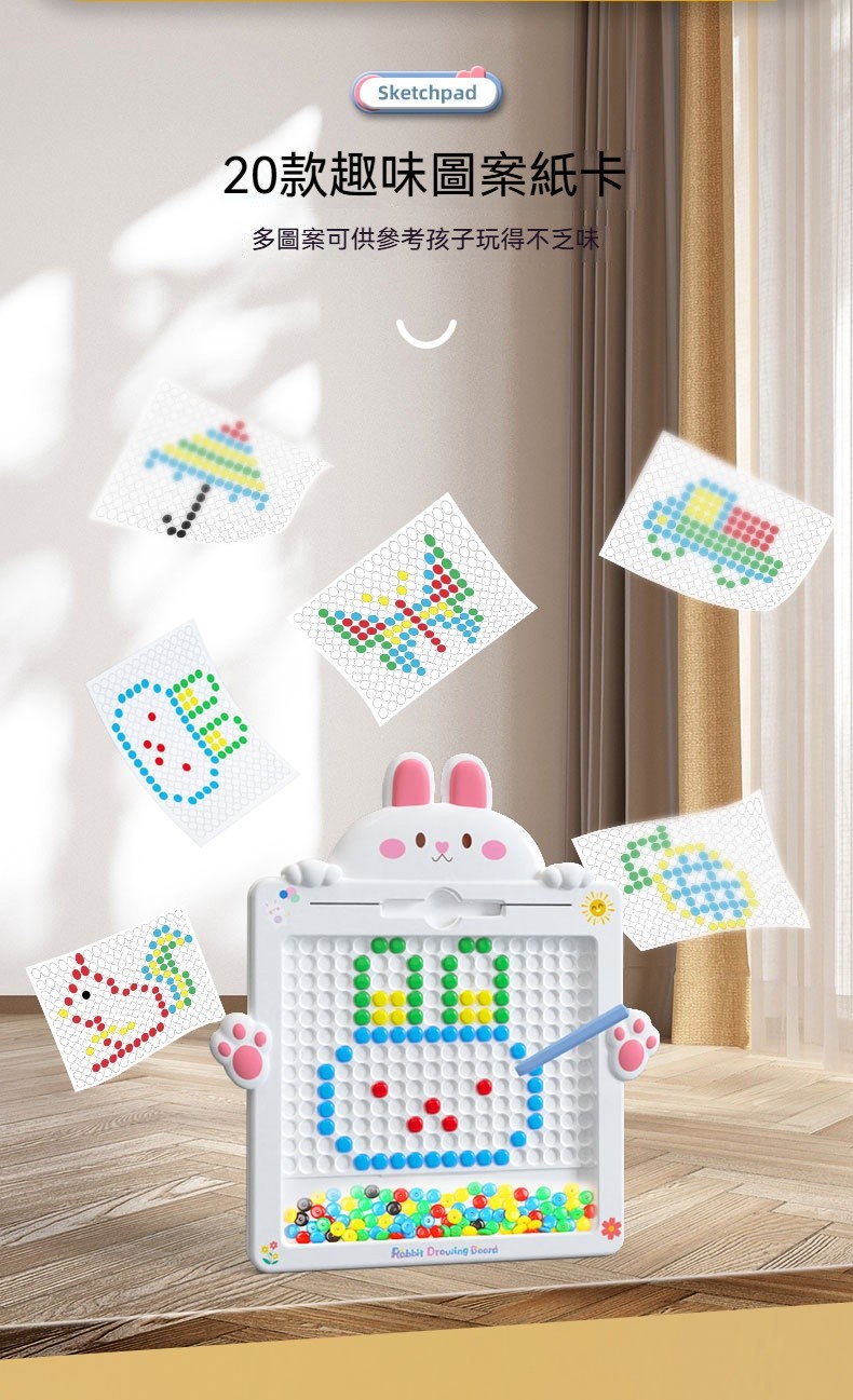 【能畫畫的萌兔畫板來了】磁吸運筆畫板~玩出專注力+色彩感知力!✨【玩出五大能力】 ✅ 色彩認知:6種鮮豔彩珠激發視覺感知 ✅ 創意啟發:自由創作獨一無二的圖案 ✅ 專注培養:需要耐心完成作品的成就感 ✅ 精細動作:磁吸移動訓練手部小肌肉